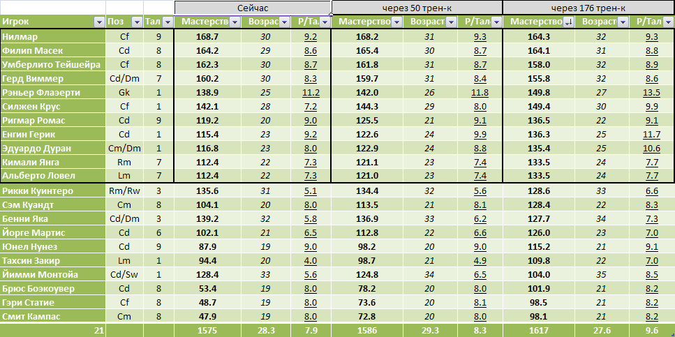 В конце 15 - начале 16 сезона покупаю 30-31//160+ [Cm] и [Rm]. В начале 17 сезона покупаю вратаря и талантов на недостающие позиции.